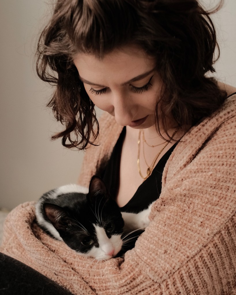 Yumi to mała czarno-biała kotka, która trafiła do nas jesienią 2025 roku, kiedy miała około 3 miesięcy. Okazało się, że Luna i Yumi mają wiele wspólnego i w ciągu kilku tygodni nawiązały naprawdę fajną relację, chociaż początki nie zapowiadały tak optymistycznego rozwoju sytuacji. Zakładałam, że będą żyć obok siebie, a one naprawdę się zaprzyjaźniły. Yumi to mój pierwszy kot. Uczę się przy niej nowego podejścia do treningu i komunikacji.